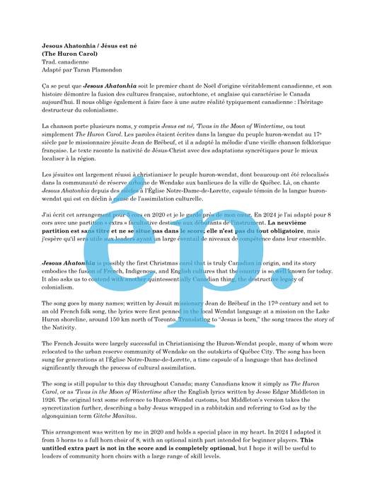 Jesous Ahatonhia (The Huron Carol) for 8 horns [Digital Download]
