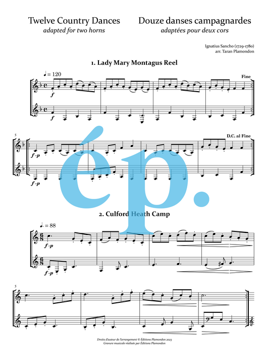 Ignacius Sancho's Twelve Country Dances adapted for two horns [Digital Download]