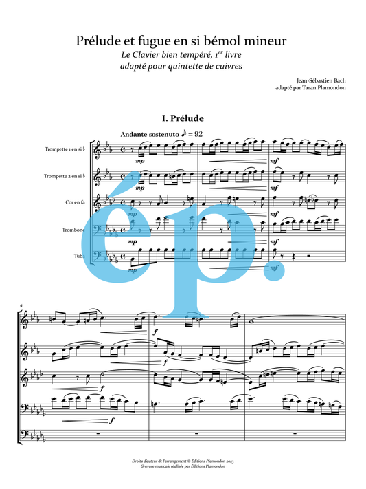 Prelude and Fugue in B-flat minor arranged for brass quintet [Digital Download]