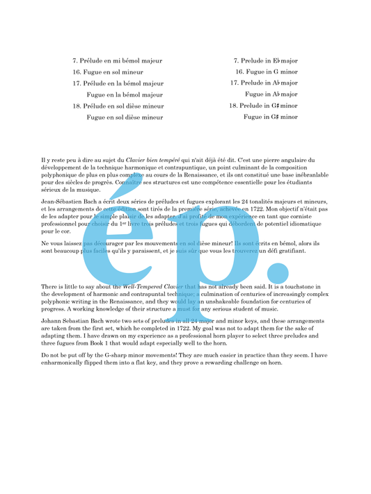 Selections from The Well Tempered Klavier, Book 1 arranged for four horns [Digital Download]