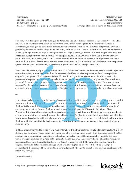 Brahms' Six Pieces, op. 118 arranged for oboe & piano [Digital Download]