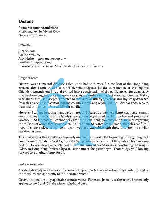 Distant for mezzo-soprano and piano [Digital Download]