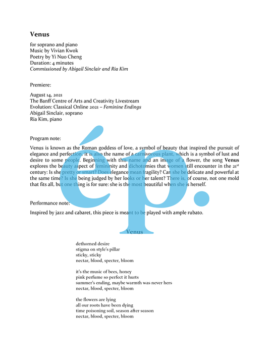 Venus for soprano and piano [Digital Download]