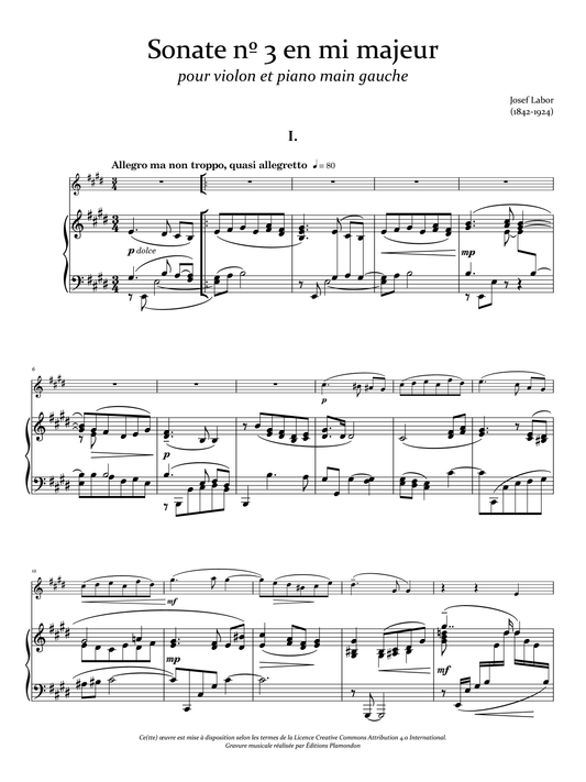 Josef Labor's Sonata No. 3 in E major for violin & piano left hand [Digital Download]